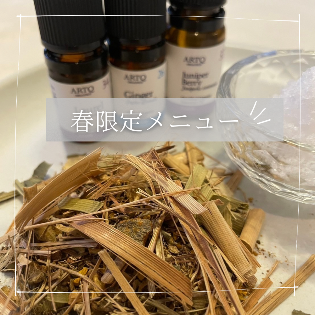 ❀春限定メニュー❀150分コースでは、デトックス力の高いブレンドハーブと天然塩を煮出したハーブミストサウナをご体感いただけます🌿